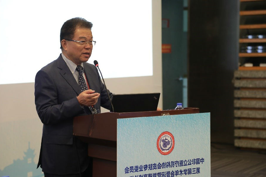 中国非公立医疗机构协会皮肤专业委员会主任委员郑志忠教授致开幕词